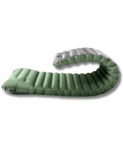 Static V Junior liggeunderlaget fra Klymit passer godt til børn og lavere campister. Det vejer kun 383 g og måler 127 x 58 x 6 cm, hvilket gør det let at transportere og ideelt til ture. Denne model har samme brede og tykkelse som originalen, men i en kortere version. Det V-formede design sikrer god ergonomisk støtte og holder dig centreret, hvilket giver en stabil søvn. Materialet er lavet af solidt 75D polyester, som kan holde til udendørs brug. Deep Welds ekspansionszoner sørger for isolering mod kulde og forhindrer, at luft slipper ud. Det kan pustes op med 6-10 pust, hvilket gør det nemt at sætte op. Med en R-værdi på 1.3 giver det en god soveoplevelse til en rimelig pris.